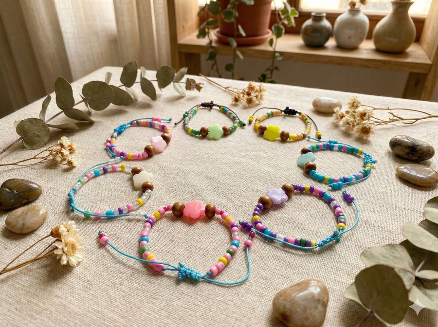 Handmade beaded bracelet, 7 pieces