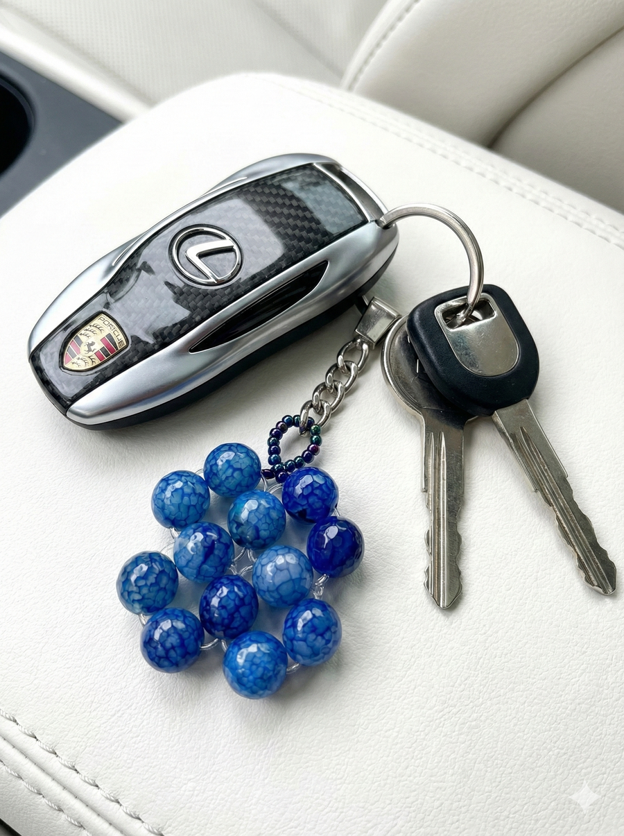 Name: Royal Blue Agate Keyring - Handmade